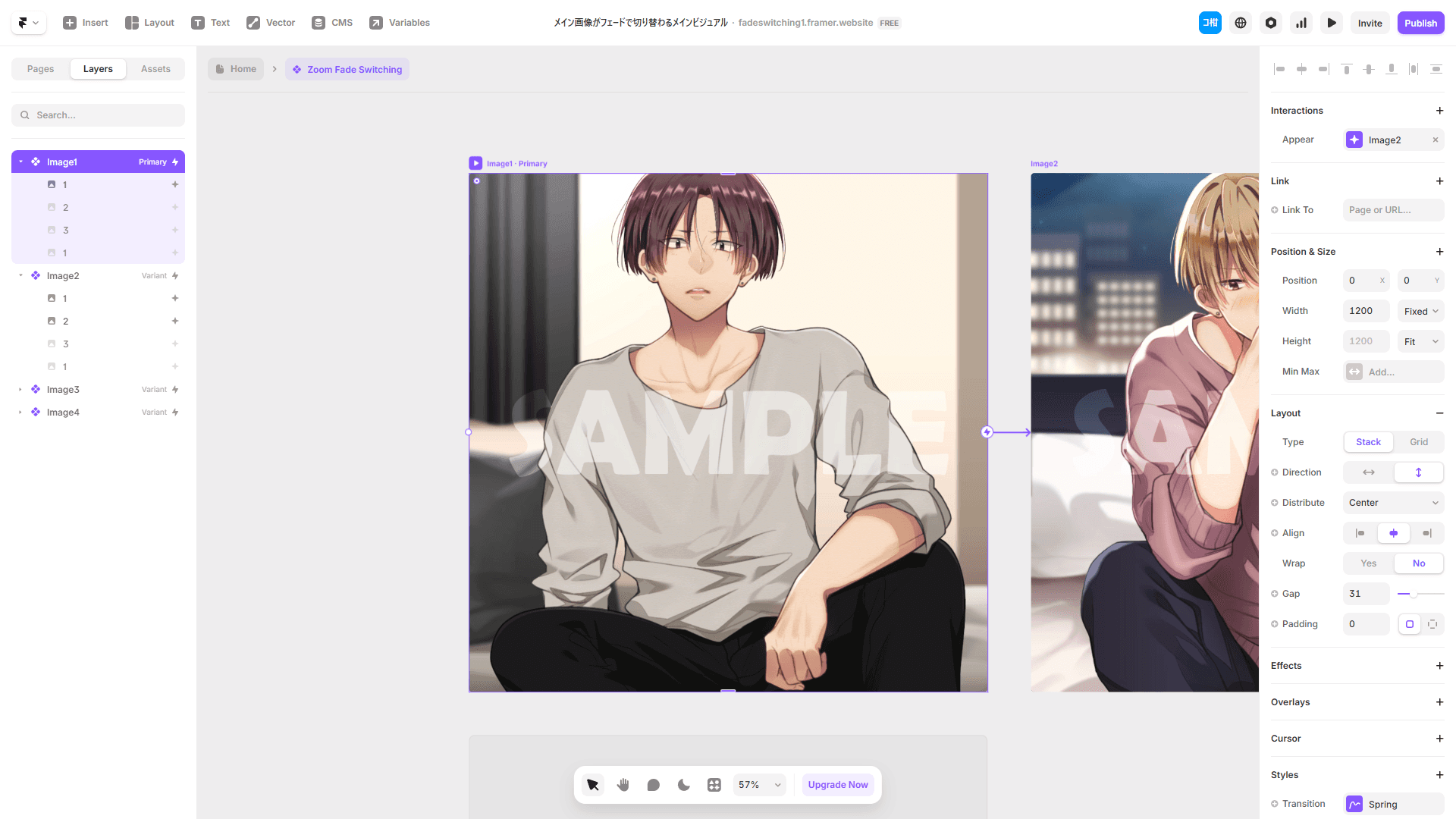 画像をコンポーネント化して、枚数分のVariantを用意する