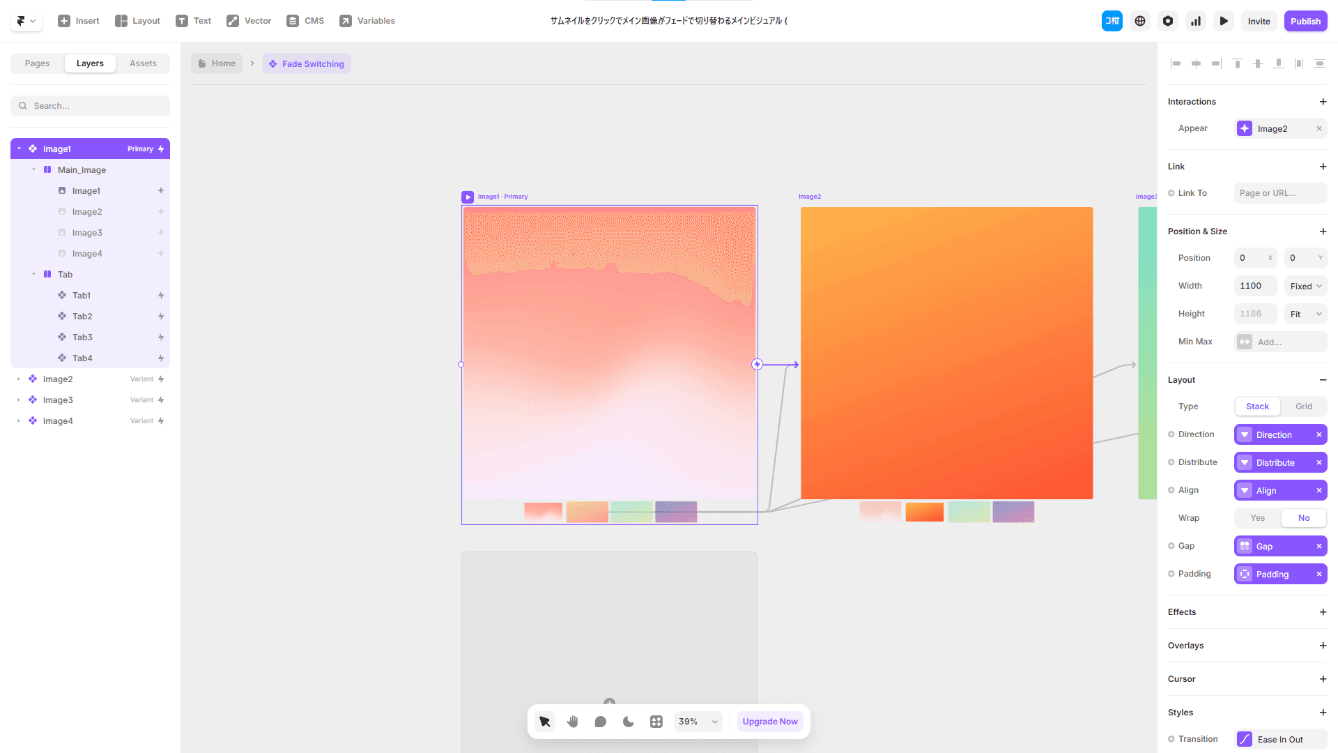 タブのコンポーネントはVariantで選択時・非選択時のデザインを用意する
