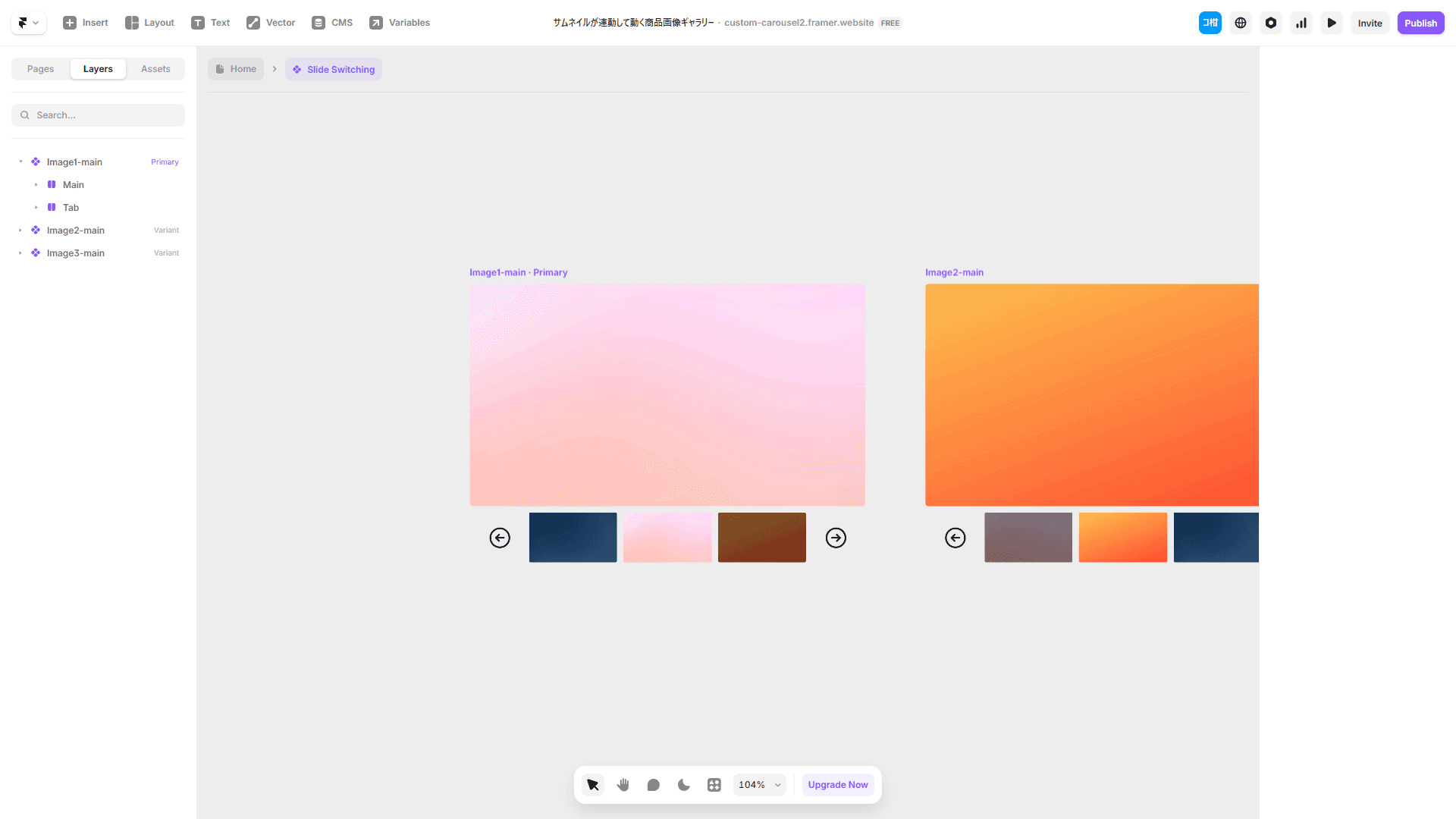 サムネイルが連動して動くために、Variantごとにサムネイルの並び順も変更する